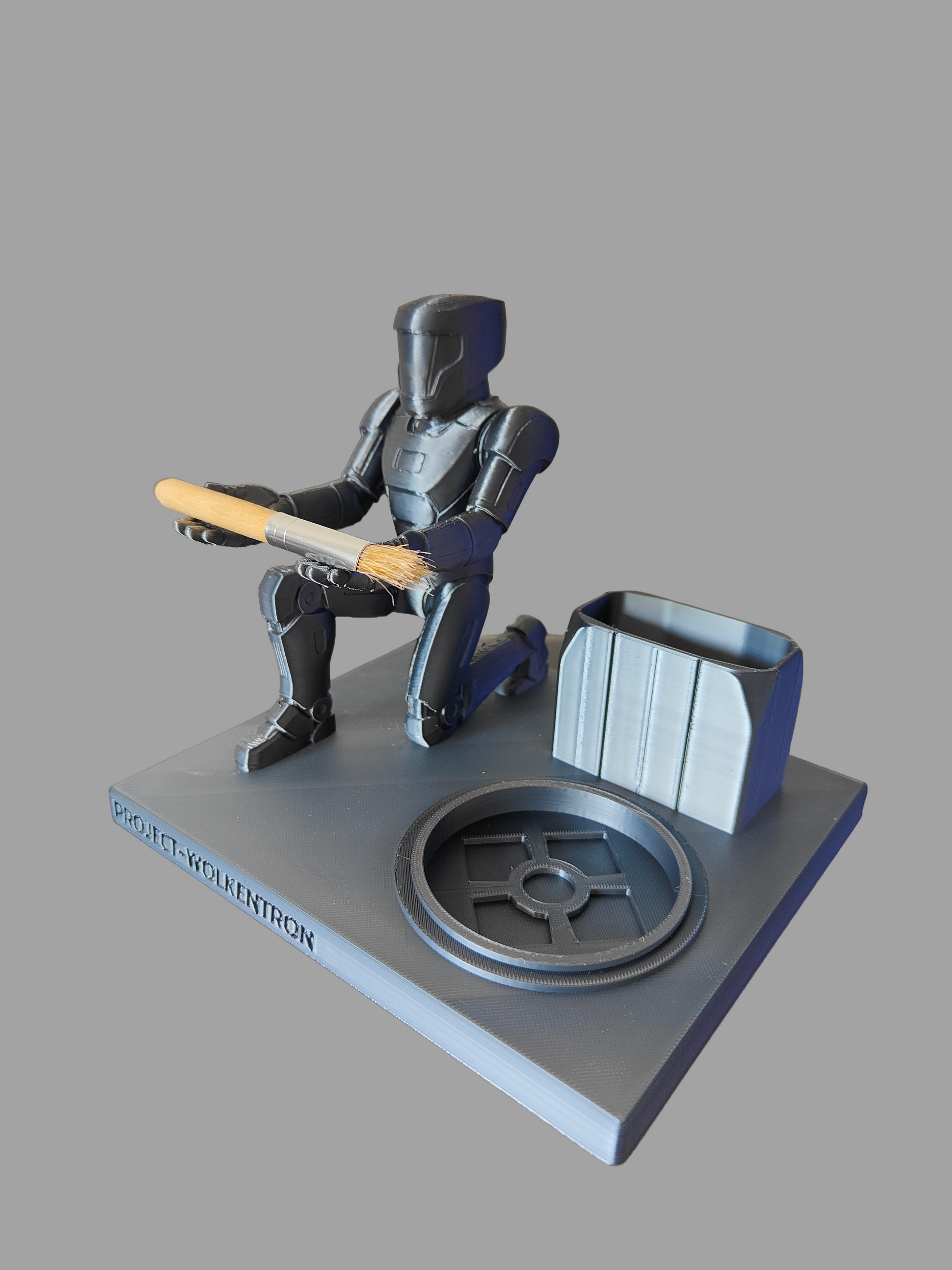 ⚙️ Signature Mech Design – Striking robotic figure to hold your tools!